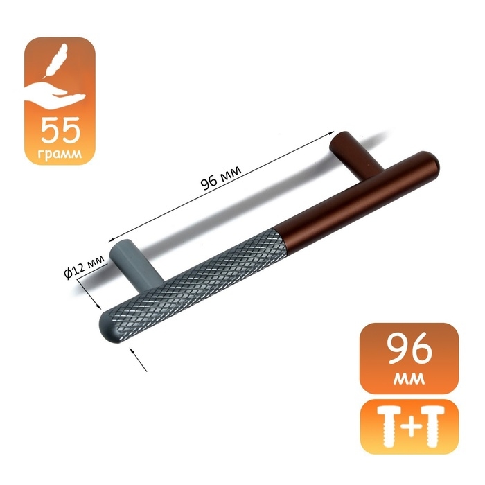 Ручка-рейлинг CAPPIO EPHRAM, м/о 96 мм, цвет серый/коричневый