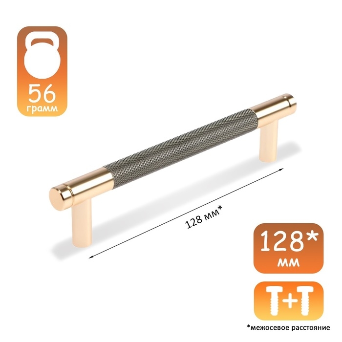Ручка-рейлинг CAPPIO CRYSTAL, м/о 128 мм, цвет золото/серый