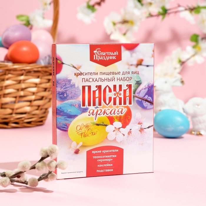 Входящие в набор красители и декоративные материалы позволят легко и просто оформить пасхальные яйца, а картонные заготовки - собрать оригинальные подставки для яиц.