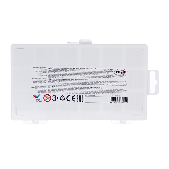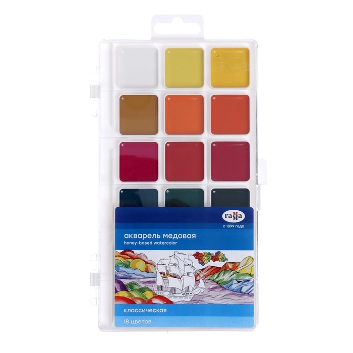 Акварель 18 цветов Гамма "Классическая", медовая, без кисти, пластик, европодвес 1009196