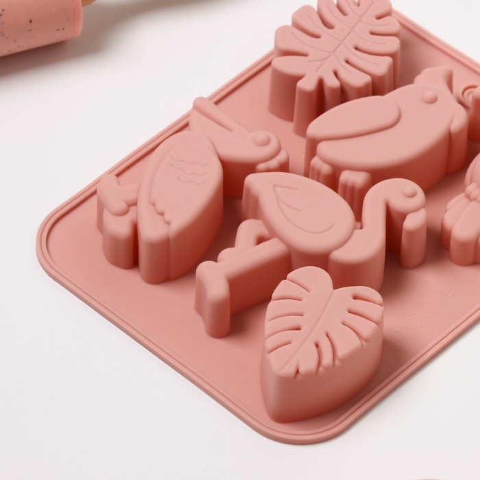 Форма для выпечки Доляна «Тропики», силикон, 18×14×2,5 см, цвет розовый