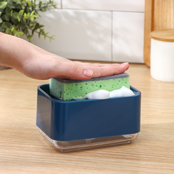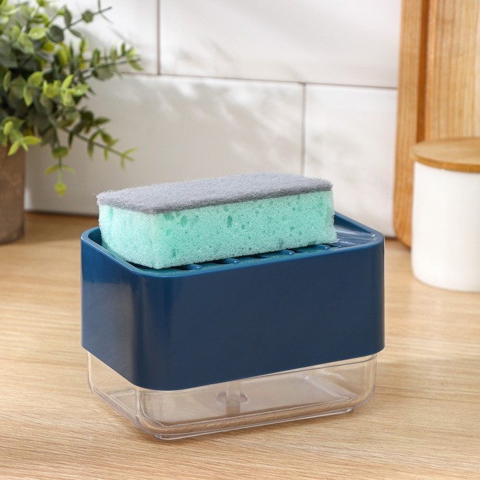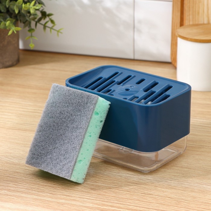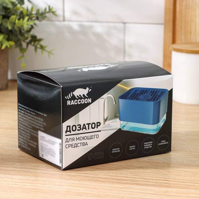 Дозатор для моющего средства с подставкой для губки Raccoon, губка в комплекте, цвет синий