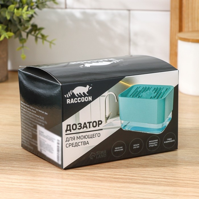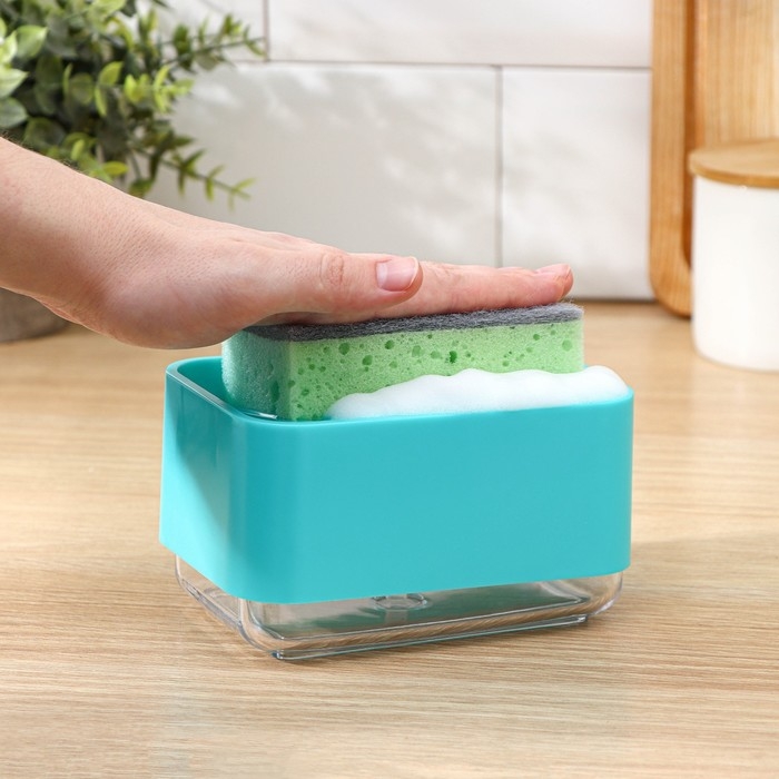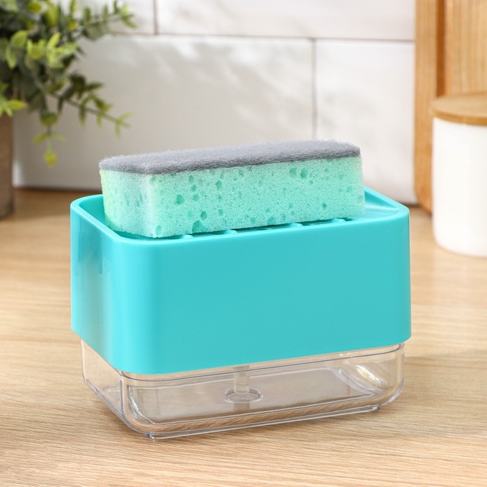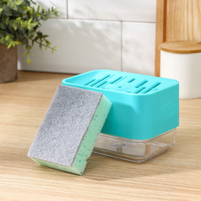 Дозатор для моющего средства с подставкой для губки Raccoon, губка в комплекте, цвет бирюзовый