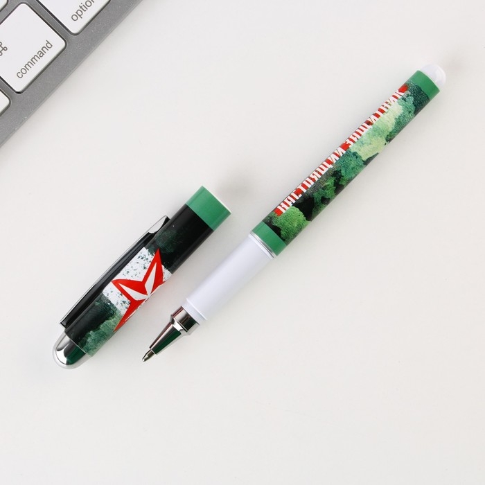Ручка шариковая синяя паста, пластиковая со звездой "С 23 Февраля"