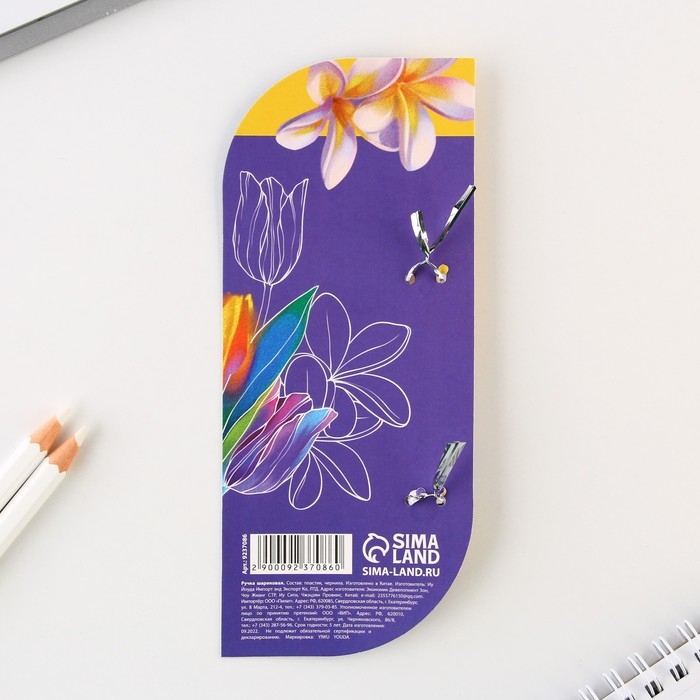 Ручка шариковая синяя паста «Цветок»,пластик, на подложке 8 марта