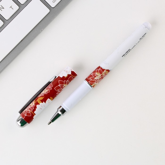 Ручка шариковая синяя паста, пластиковая с цветком "С 8 Марта"