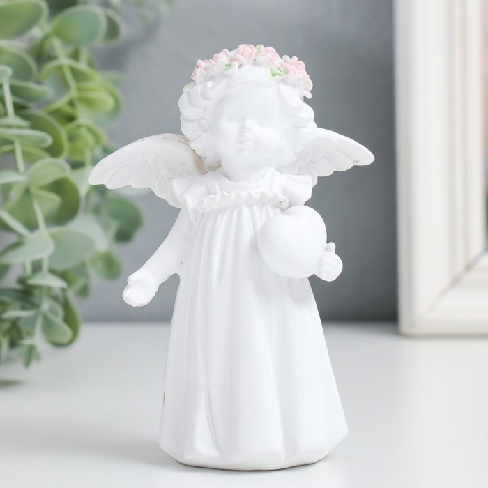 Сувенир полистоун "Малышка-ангелок с сердечком" белоснежный" МИКС 8,5х4х11,8 см