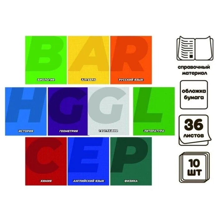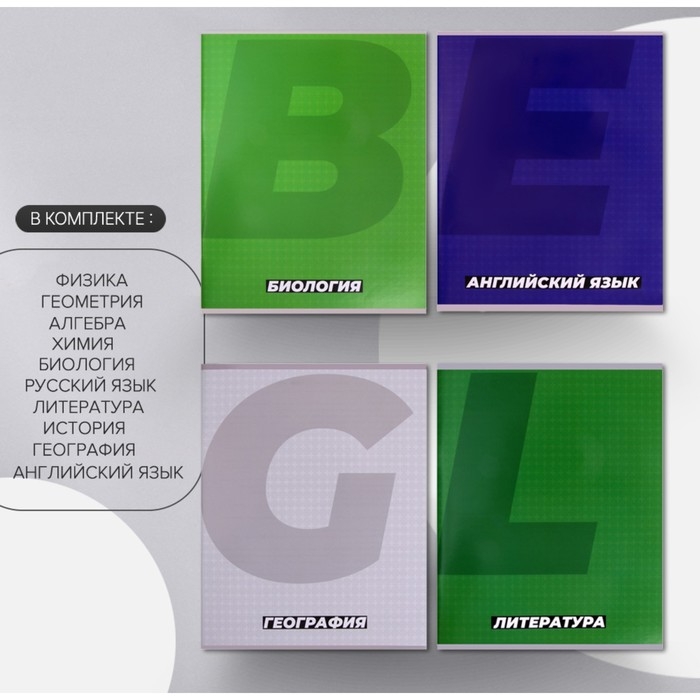 Комплект предметных тетрадей 36 листов "MonoTone", 10 предметов, со справочным материалом, обложка мелованная бумага, блок №2 (серые листы)