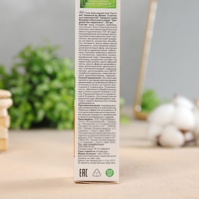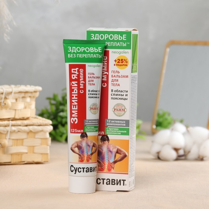 Гель-бальзам для тела "Суставит Змеиный яд" с мумием, 125 мл