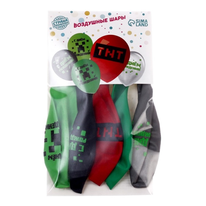Воздушный шар латексный 12" «Пиксели», 5 шт.