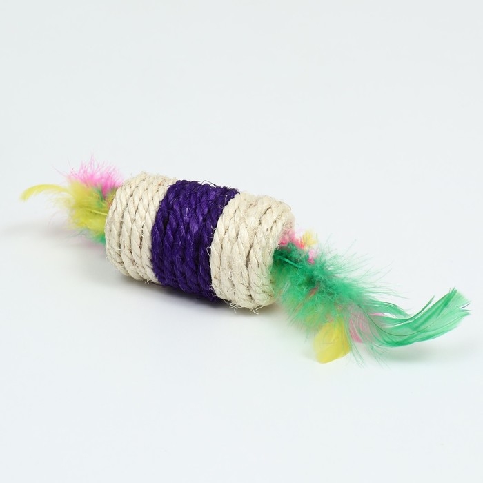 Игрушка-погремушка сизалевая "Конфетка", 6,5 х 3,5 см, белая/фиолетовая