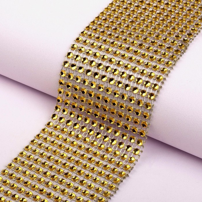 Лента с имитацией страз, 6 см, 9 ± 1 м, цвет золотой