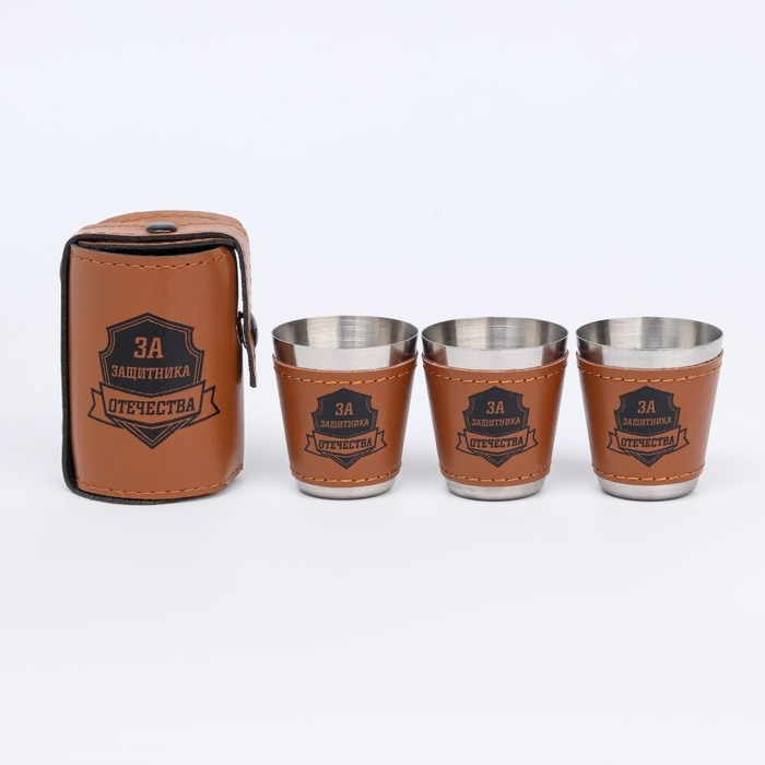 Стопки, 23 Февраля, "За защитника отечества", набор 3 шт по 30 мл, 4 х 3.5 см
