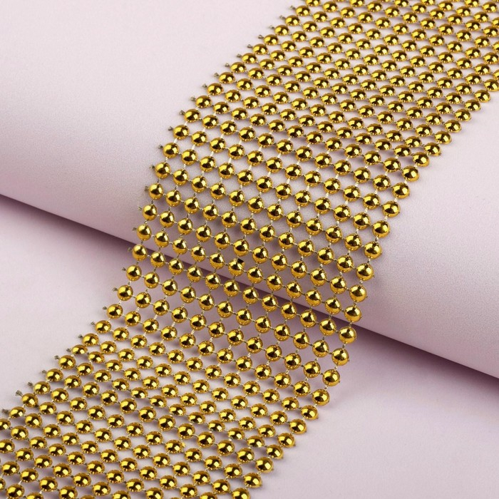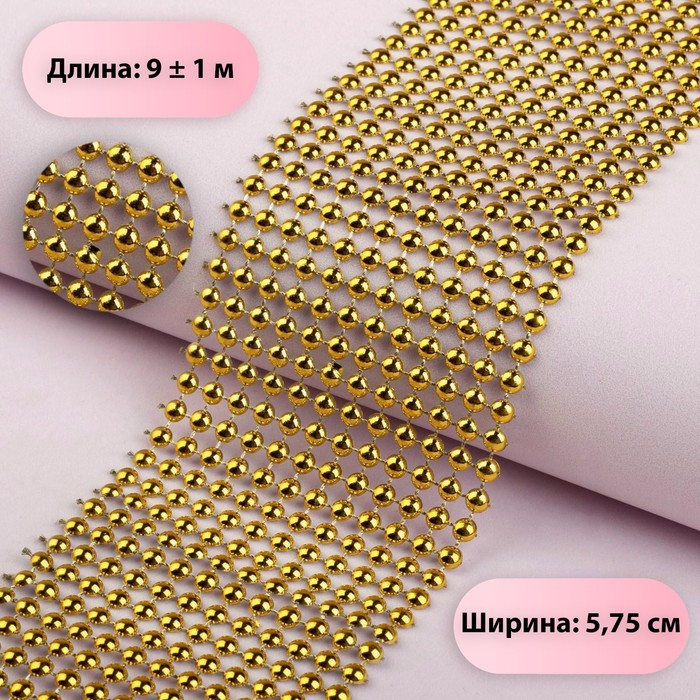 Лента с имитацией выпуклых страз, 5,75 см, 9 ± 1 м, цвет золотой