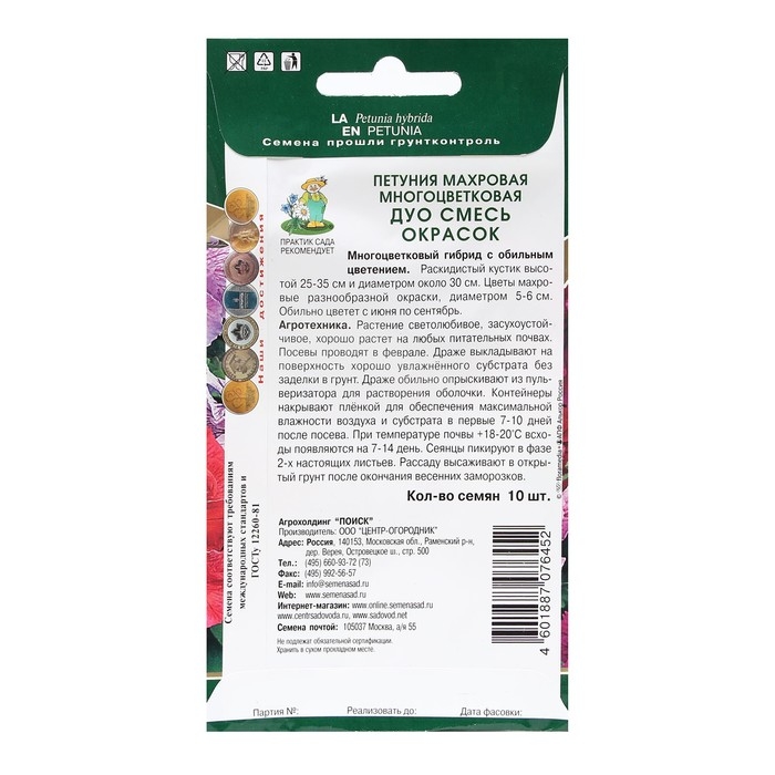 Семена цветов Петуния махровая многоцветковая "Дуо смесь окрасок" 10 шт