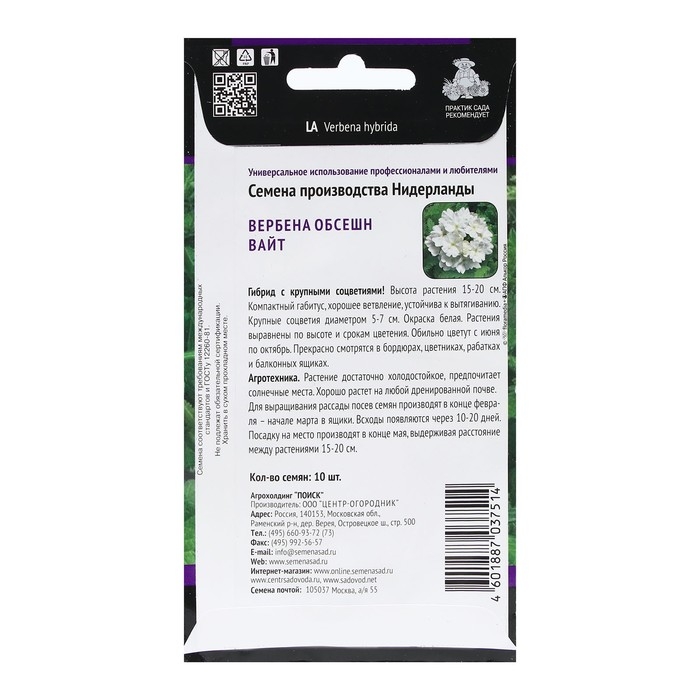 Семена цветов Вербена "Обсешн Вайт" 10 шт