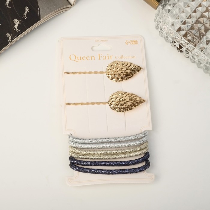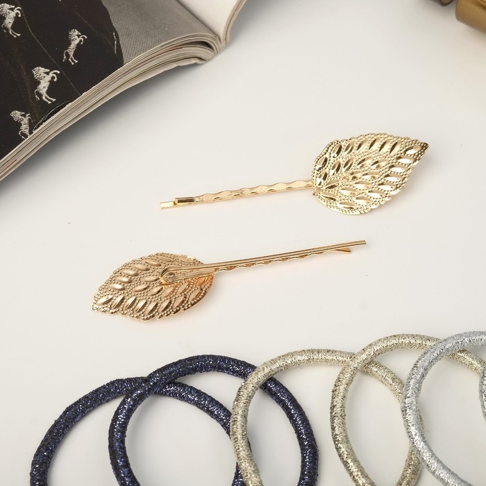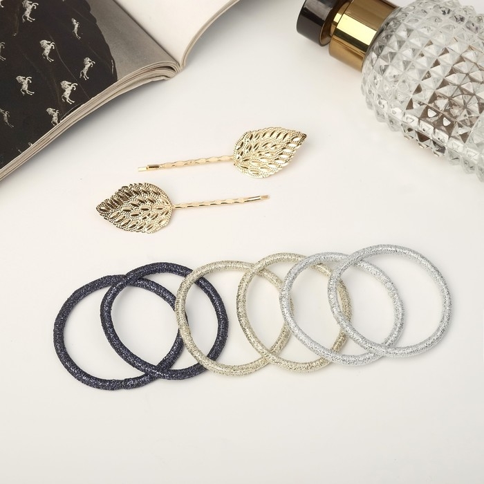 Набор для волос "Лиора" (6 резинок, 2 невидимки 5,5 см) листочки