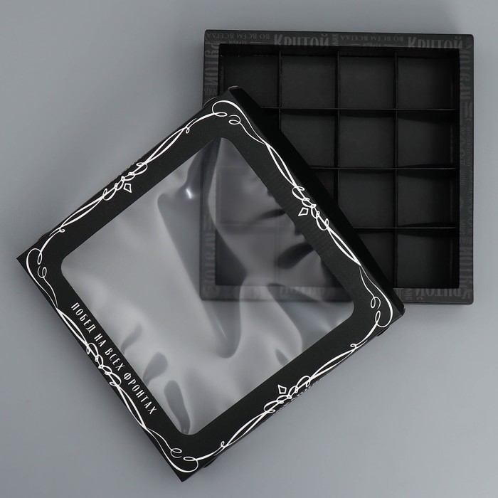 Коробка для конфет, кондитерская упаковка, 16 ячеек «Побед на всех фронтах», 18.9 х 18.9 х 3.8 см