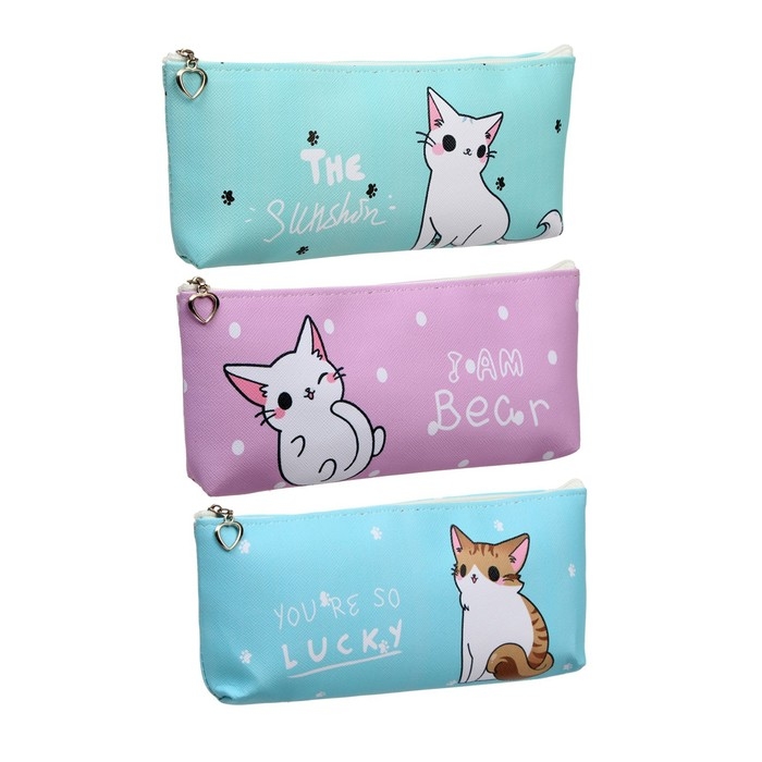 Пенал школьный на молнии "Котик", МИКС