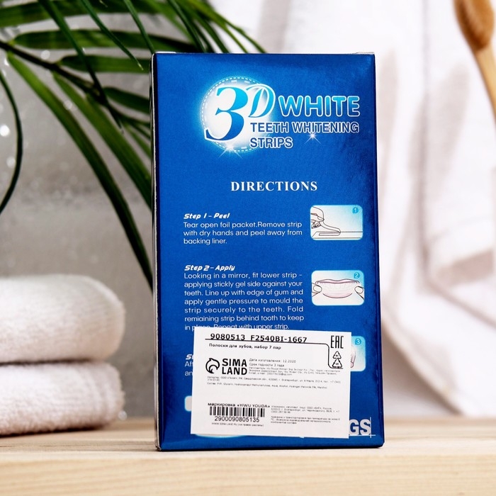 Способ применения: отбеливающие полоски для зубов - используют два раза в день по 30 минут в течение 7 дней.
