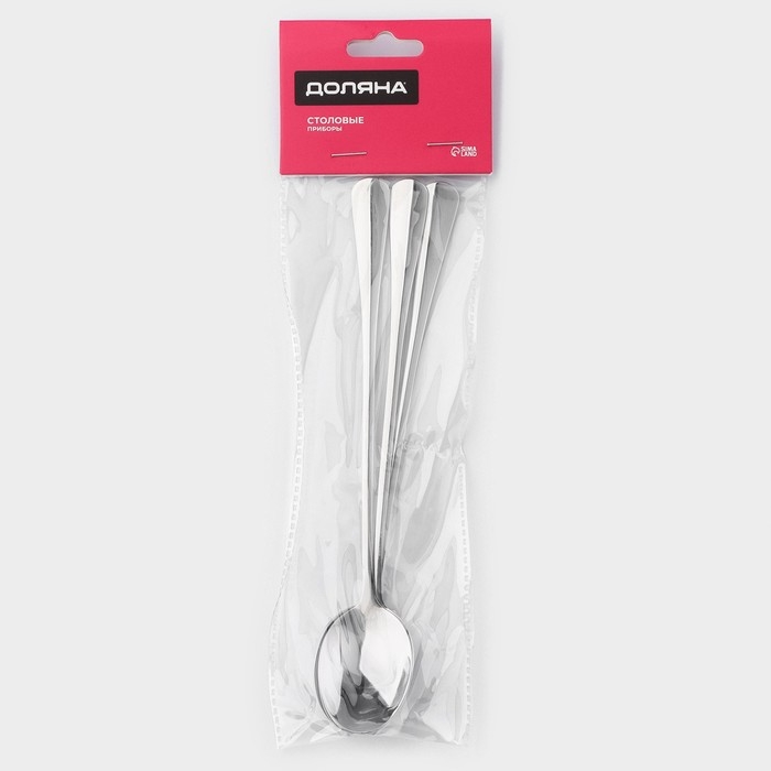 Набор ложек для ice tea из нержавеющей стали Доляна, длина 19,4 см, толщина 2,2 мм, 410 сталь, 3 шт, цвет серебряный