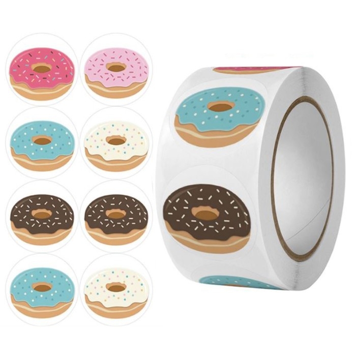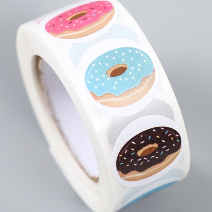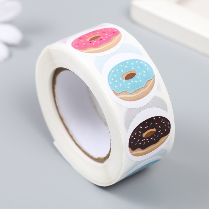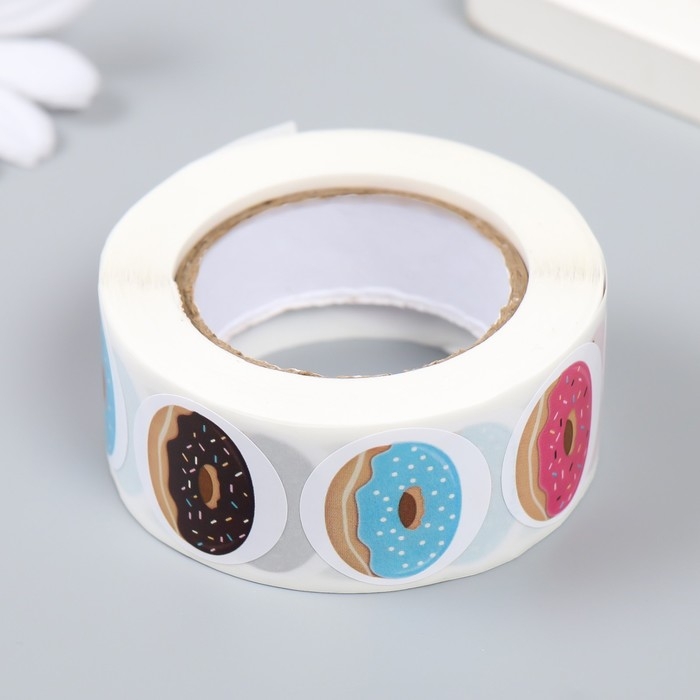 Наклейка бумага "Пончики" d=2,5 см 500 шт в рулоне 3х6,5х6,5 см