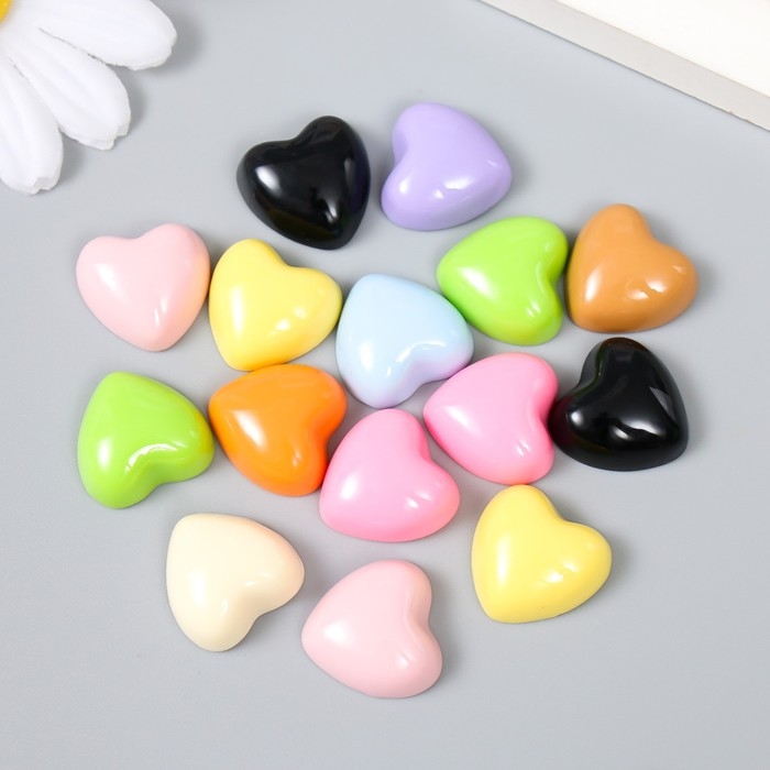 Декор для творчества пластик "Разноцветные сердечки" глянец набор 15 шт МИКС 1,7х1,7х0,7 см 935991