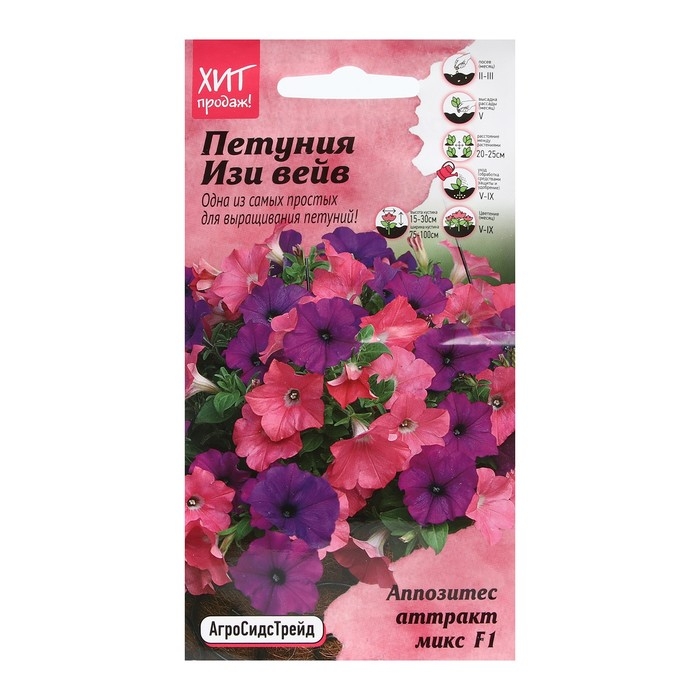 Одна из самых популярных ампельных петуний американской селекции. Название сорта переводится, как «легкая волна притягивающихся противоположностей», отличается обильным, продолжительным цветением, многообразием окрасок и простотой выращивания. Срок от посева до пикировки: 4-6 недель. Срок от пикировки до получения готового растения: весной - 6 недель, летом - 4 недели. Исключительная выравненность.