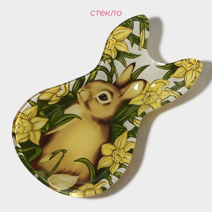 Блюдо стеклянное сервировочное Доляна «Кролик в цветах», 21×13,5×1,8 см