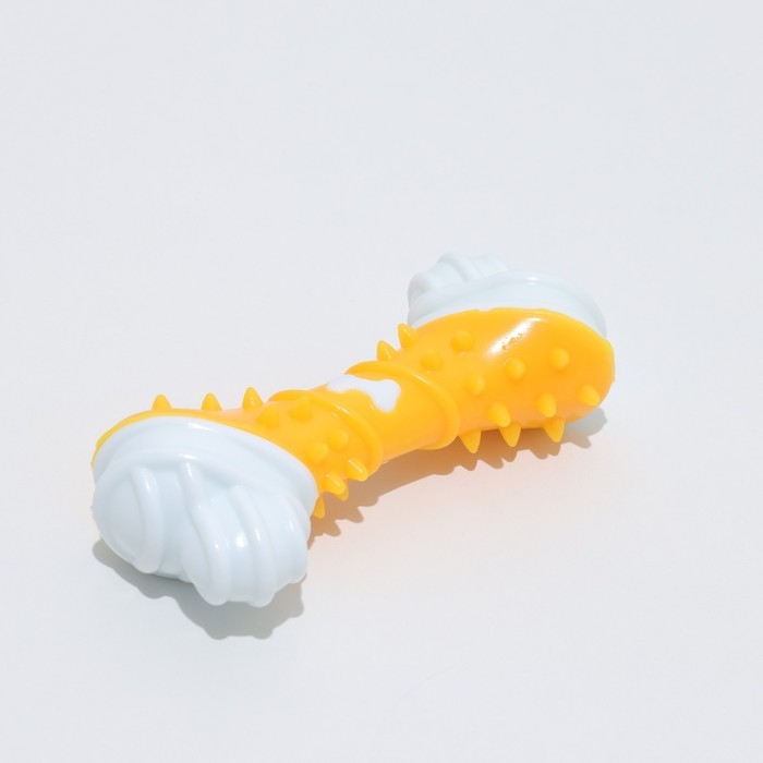 Игрушка двухслойная (твердый и мягкий пластик) "Кость", 12 см, жёлтая