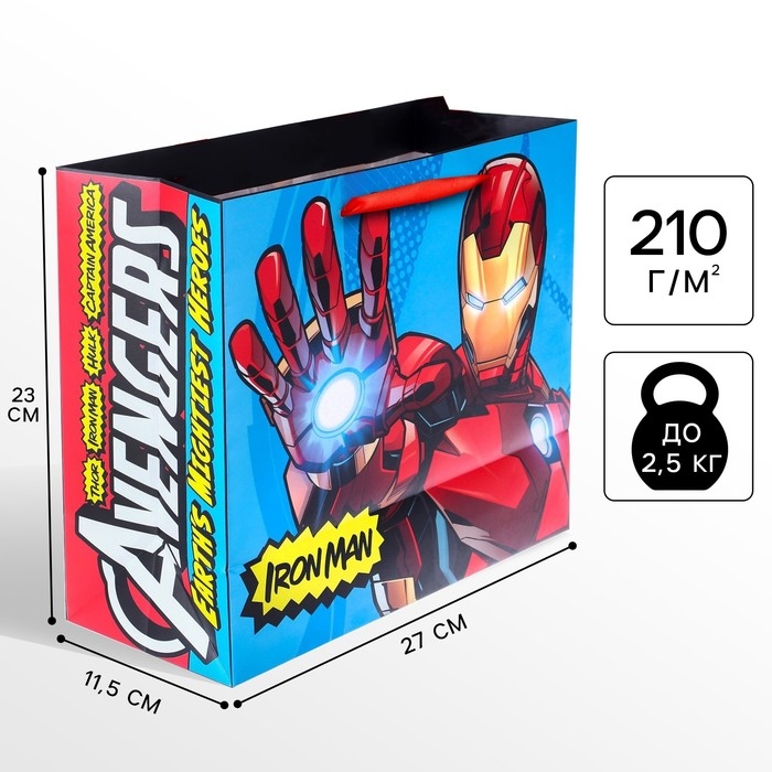 Пакет подарочный "Железный человек" 23х27х11.5 см, упаковка, Мстители