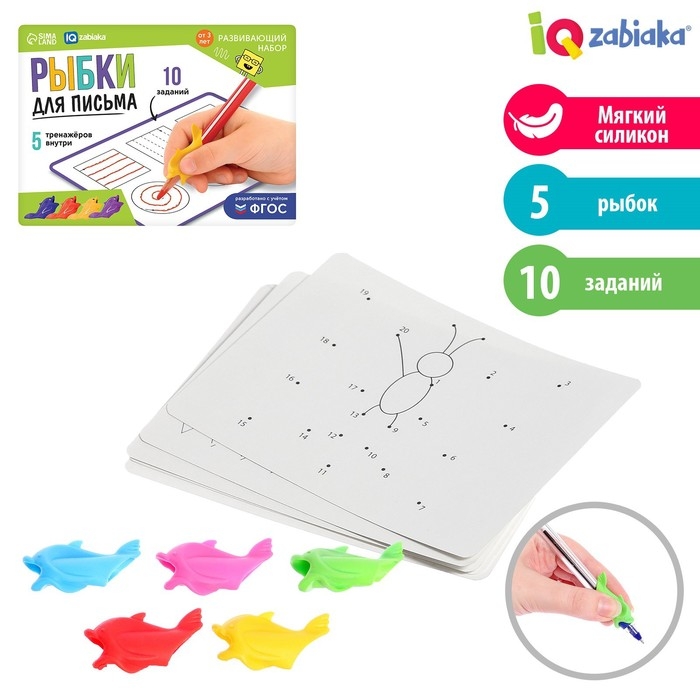 Развивающий набор «Рыбки для письма», тренажёр для письма, ручка-самоучка, 5 шт., цвета МИКС