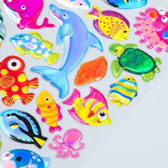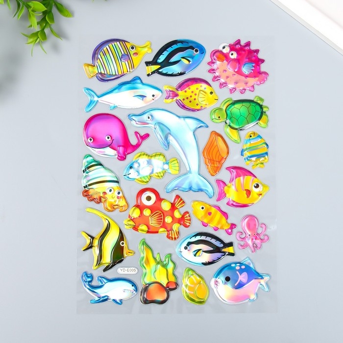 Наклейка пластик голография с металлическим отливом "Подводный мир" 9,5х27 см