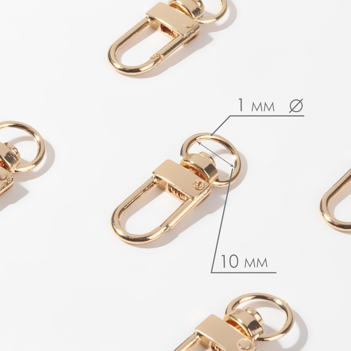 Карабин металлический, 34 × 12,5 мм / 10 × 1 мм, 5 шт, цвет золотой