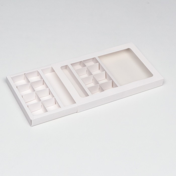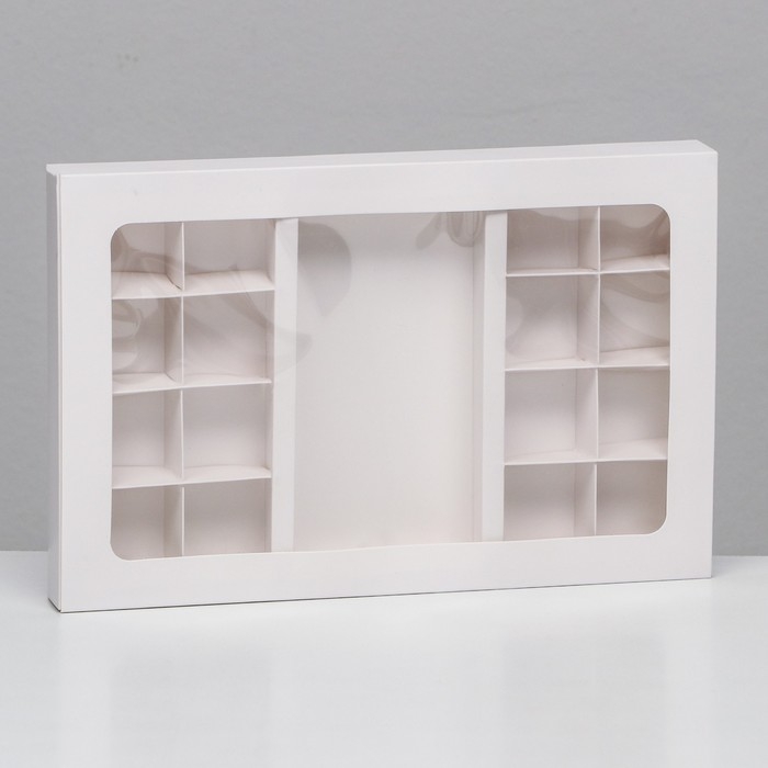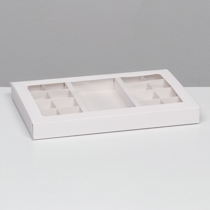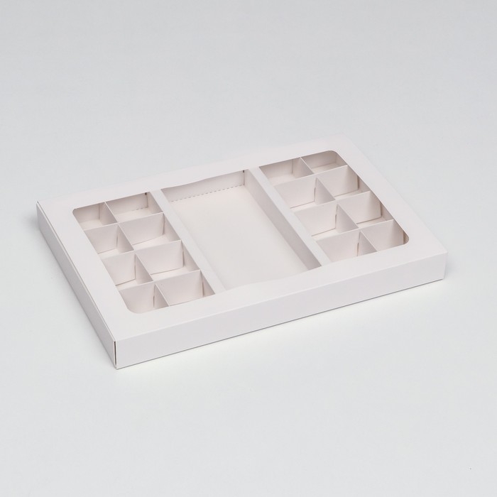 Коробка для 8 + 8 конфет + шоколад, с окном, белая 30 х 19,5 х 3 см. Кондитерская упаковка