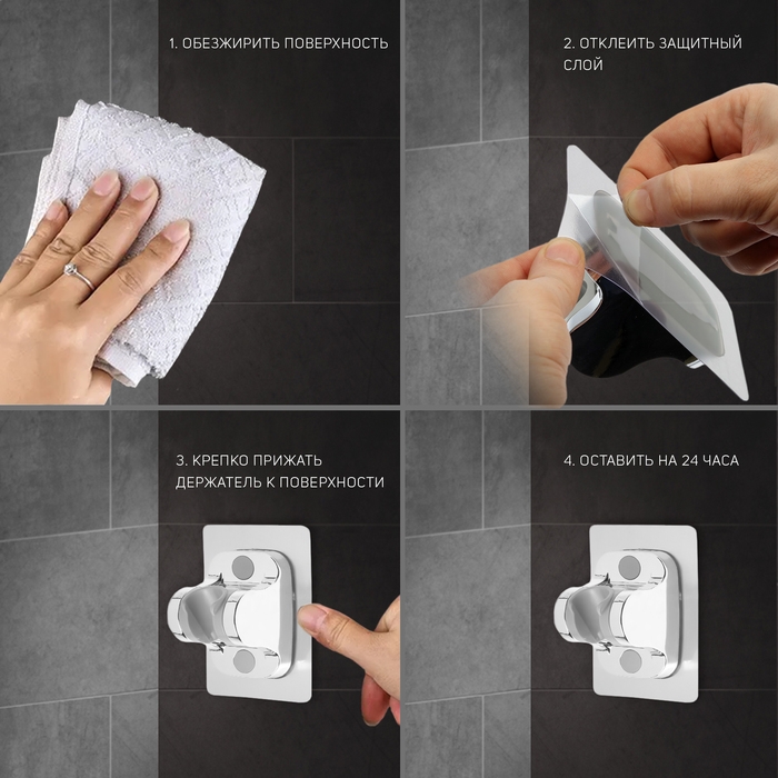 Держатель для душевой лейки ZEIN Z107, нерегулируемый, самоклеющийся, черный