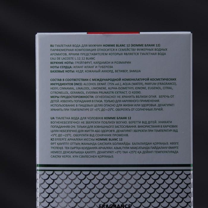 Туалетная вода мужская Homme Blanc 12, 100 мл (по мотивам Lacost 12.12 Blanc)