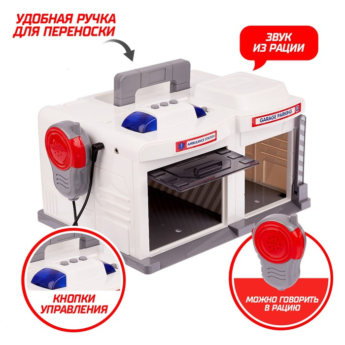 Парковка «Скорая помощь» с металлической машинкой и рацией, световые и звуковые эффекты