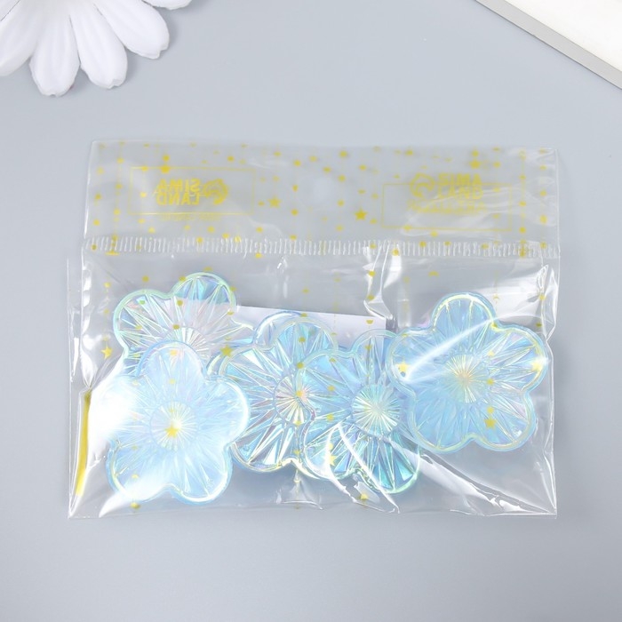 Декор для творчества пластик "Цветок" голография перламутр набор 6 шт 3,5х3,5 см