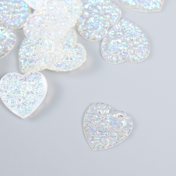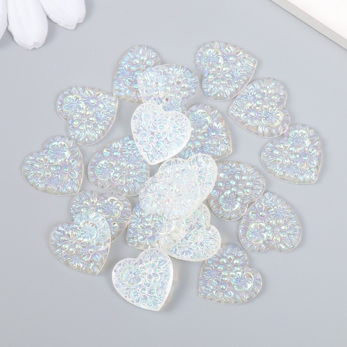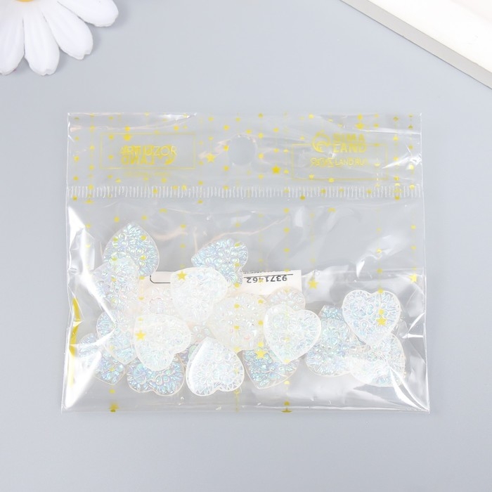Декор для творчества пластик "Сердце" голография белый набор 20 шт 1,6х1,6 см