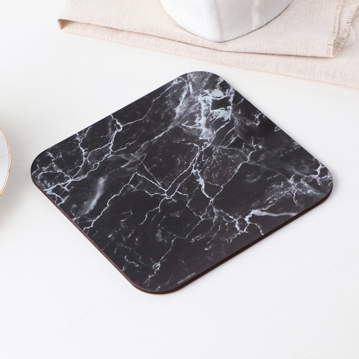 Подставка под горячее квадратная «Черный мрамор», 15х15 см