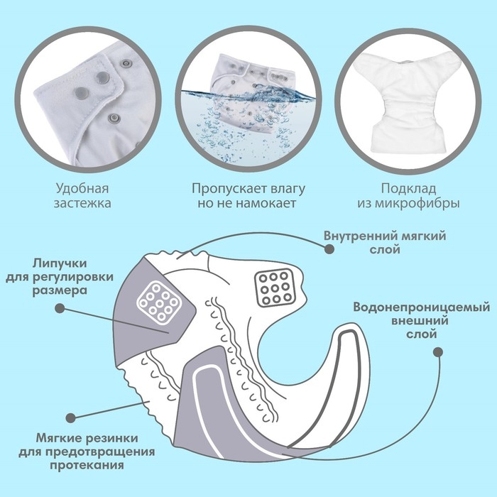 • Размер подгузника универсальный, подходит для детей от 3 до 15 кг, от рождения до 3 лет;