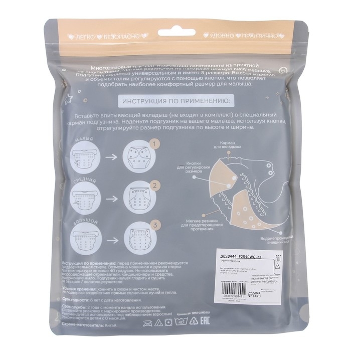 Трусики-подгузник, многоразовый, с вкладышем «Бабочки», Крошка Я