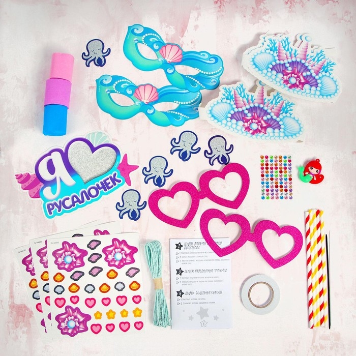 Набор для творчества «Моя вечеринка. Мы русалочки», в пакете, изготовление в теме «Русалочки»: корон, гирлянды, фотобутафории