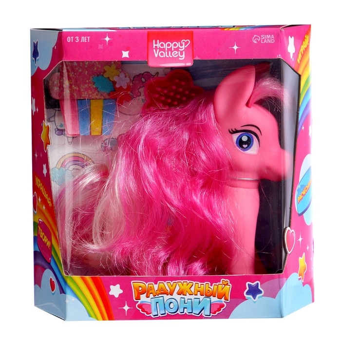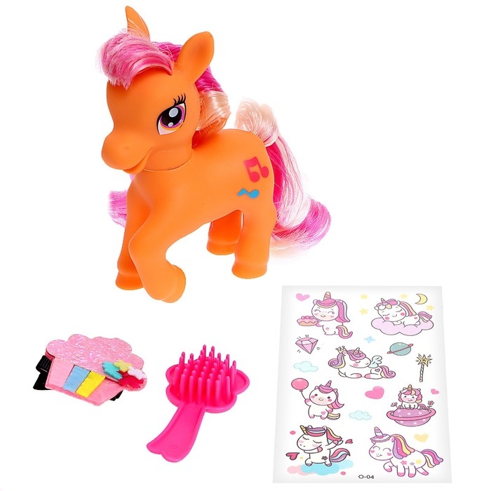 Что может быть лучше пони для маленькой принцессы? Только набор с пони, расчёской, заколкой и наклейками! С ним малышка сможет сделать креативные причёски для лошадки и украсить любимые предметы красочными наклейками. Набор станет отличным подарком на любой праздник!