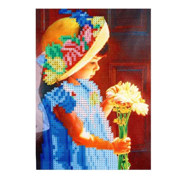 Алмазная вышивка «Единорог с цветами», 10 × 15 см, с подставкой, с частичным заполнением