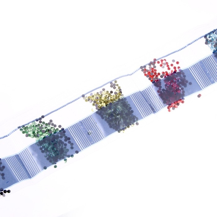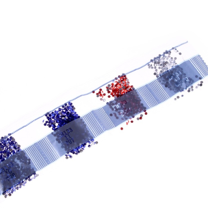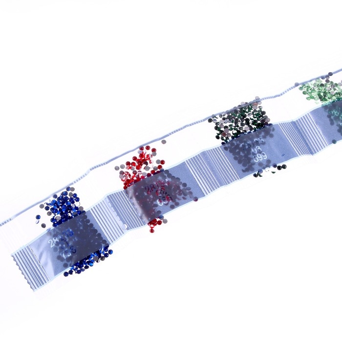 - Высыпьте стразы одного оттенка в ванночку.
