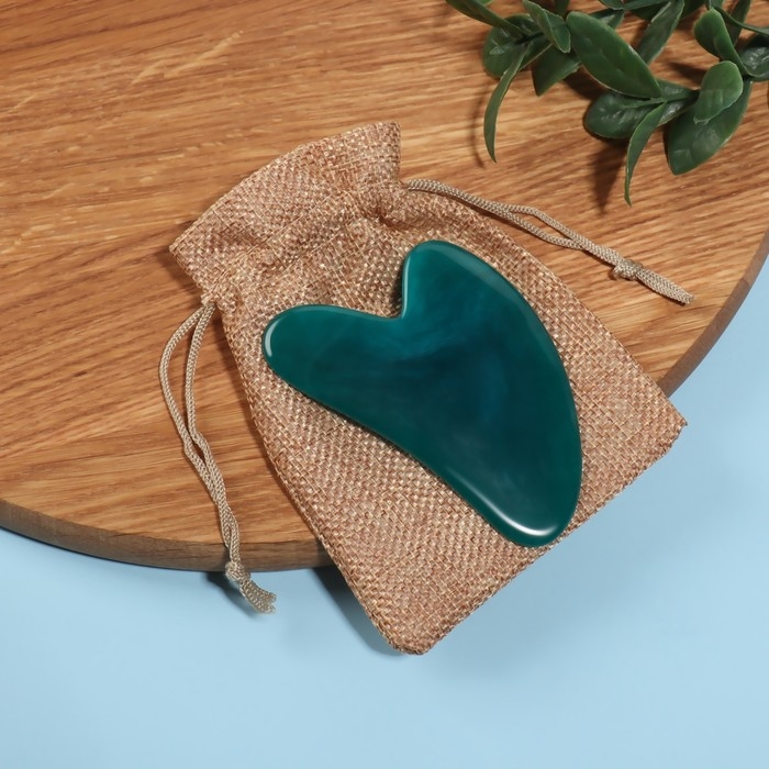Массажёр гуаша «Сердце», 8,5 × 5,5 см, цвет изумрудный