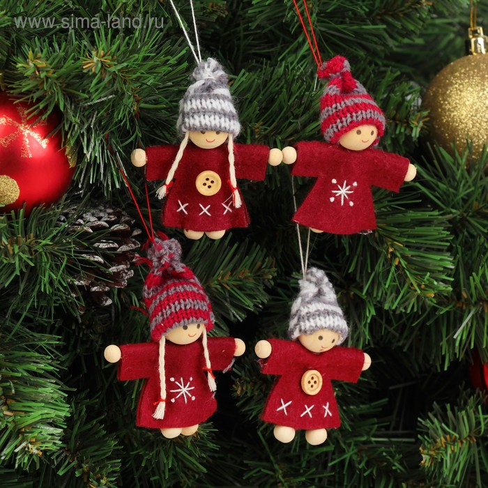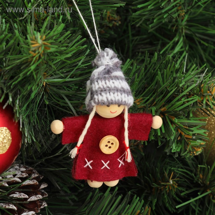 Интерьерная подвеска выполнена в виде миниатюрной куколки в зимнем наряде.