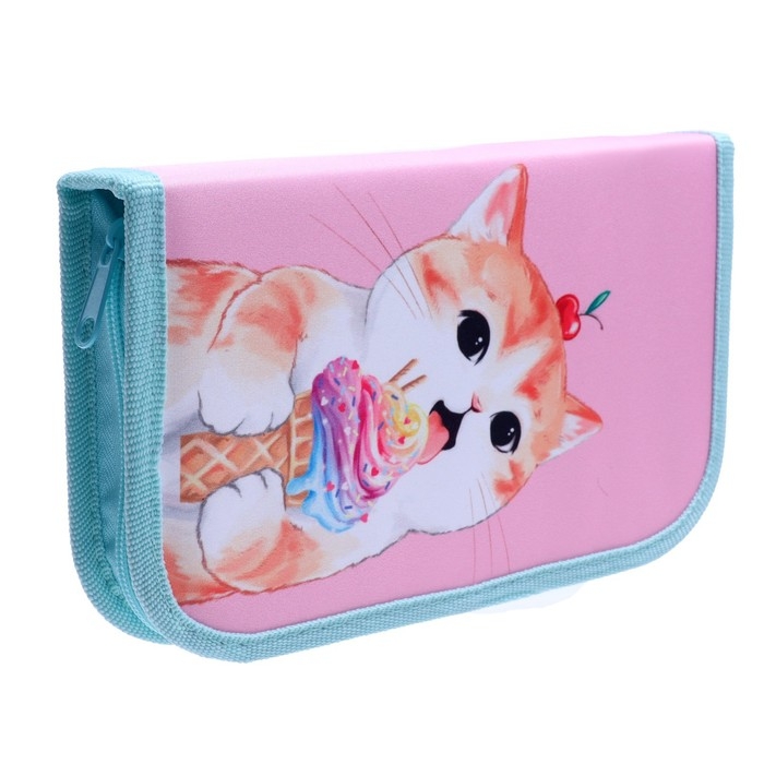 Пенал 1 секция, 130 х 210 х 40 мм, 2 откидные планки, тканевый, Calligrata TOP, Content "Котик"
